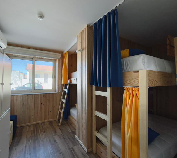 Situado a 2 minutos da praia, dispomos de quartos familiares, incluindo camaratas com beliches, opções com cama extra e até um apartamento com vista-mar, perfeitos para momentos felizes em conjunto.